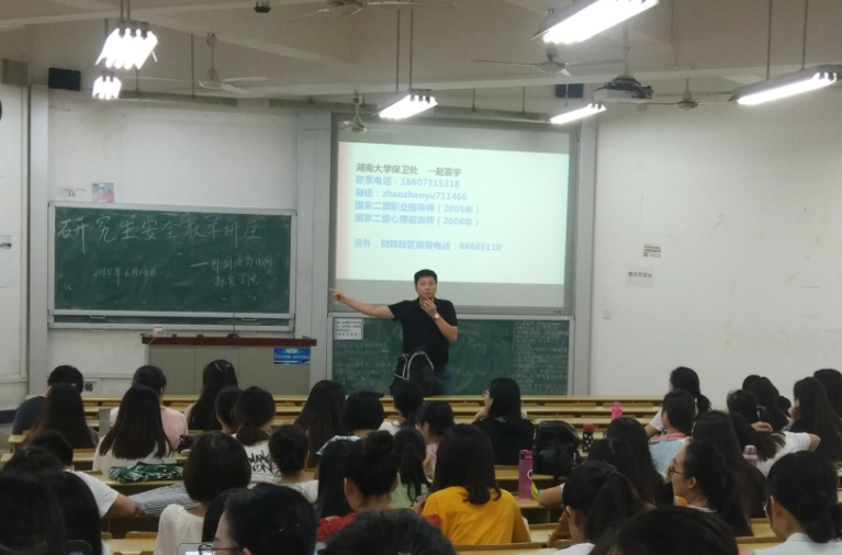 6月14日晚7点,在第二教学楼402,球王会官网保卫处赵震宇副处长为外语公司的研究生带来了一场别开生面的“安全知识讲座”。