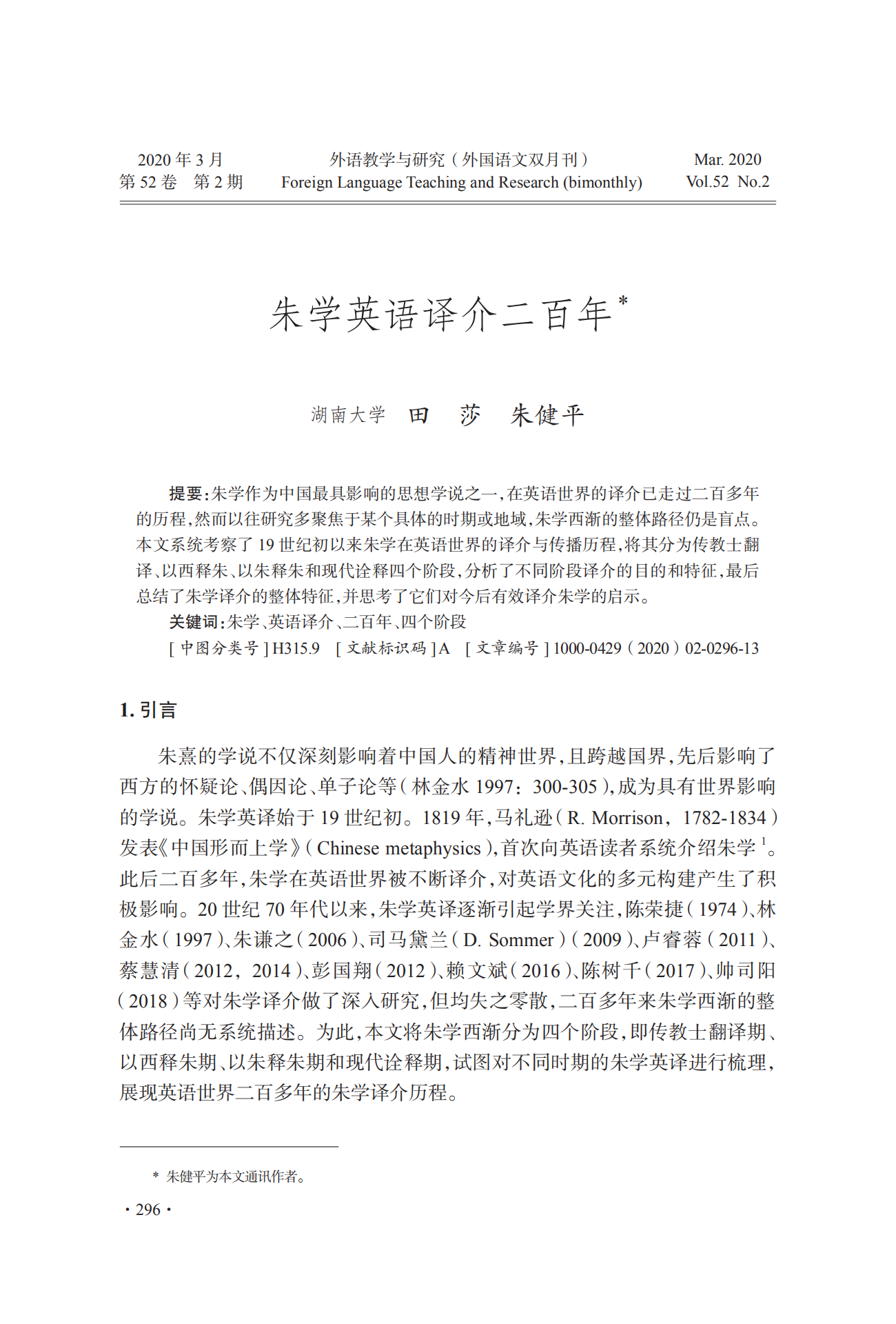 朱学英语译介二百年_田莎