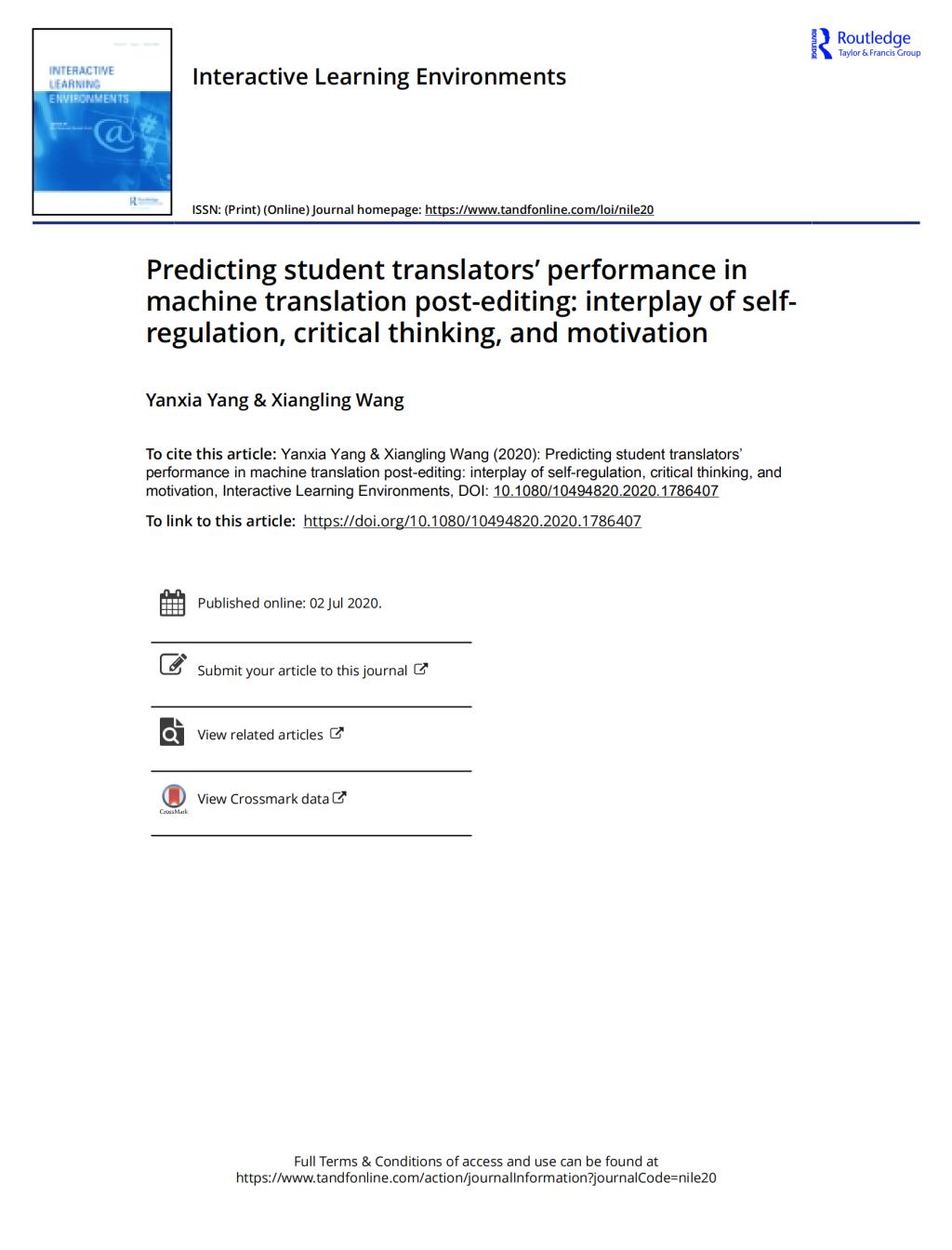 上一条:刘松_理雅各《墨子》译介成因钩沉--《中国翻译》2020(4) 下一条:中国英语学习者have附缩限制习得自然机制与使然机制—曾涛