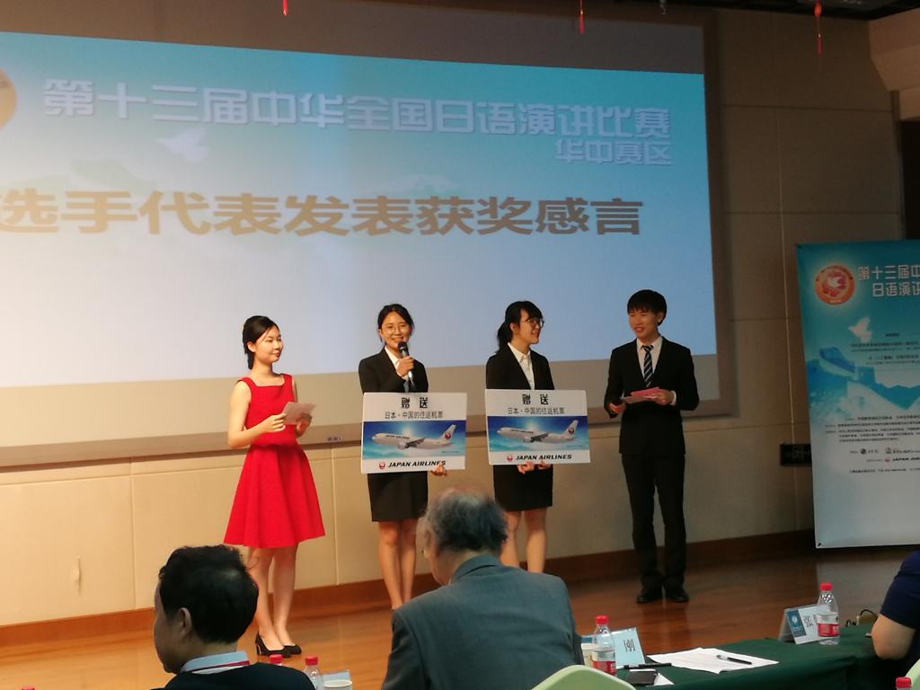5月27日,第十三届中华全国日语演讲比赛华中区赛在华中师范大学落下帷幕,来自湖南、湖北、河南、安徽四省各大高校的32位选手参加比赛,球王会2015级本科日语1班陈沫言同学凭着扎实的语言功底和即兴演讲中的出色表现,以全场第二高分获得大赛特等奖,并与第一名获得者共同晋级7月份在日本东京举行的中华全国日语演讲比赛总决赛。
