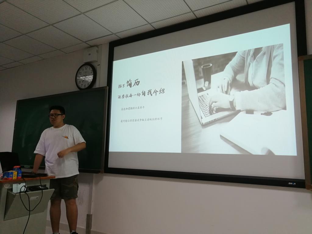 张愿学长首先询问了同学们的面试经历,接着分享了自己的面试经历和在公司中筛选简历的经验,以幽默风趣的方式告诉了同学们面试中的一些不成文规则以及在面试前该如何准备、面试中该如何表现的技巧,逐步减轻了同学们对面试的恐惧。