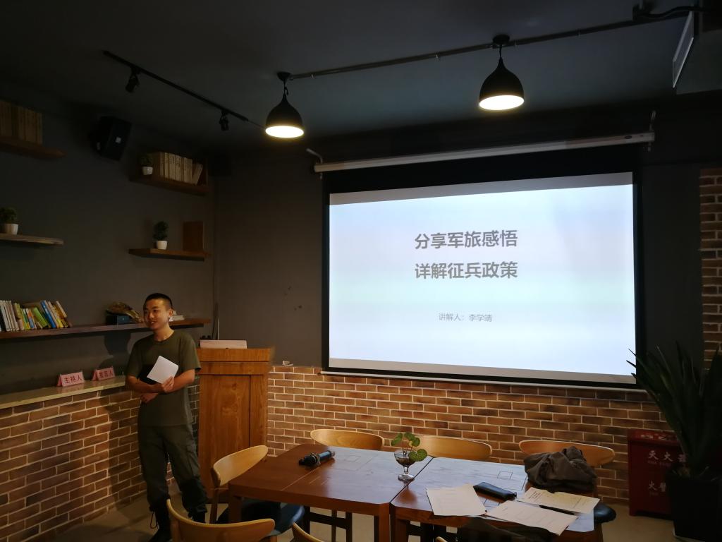 接下来,学长向同学们讲解了国家目前的征兵政策与报名流程。其中包括对军人的优先选拔、学费补偿、保留学籍与研究生推免及初试加分等多个优惠政策。