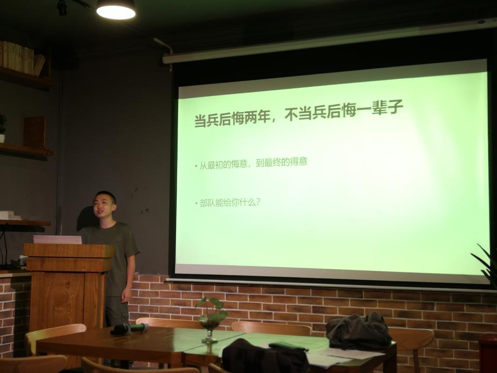 “当兵后悔两年,不当兵后悔一辈子”学长如是说道。学长从两年的经历谈起,讲出了许多自己对军队生活的独特感悟与见解。