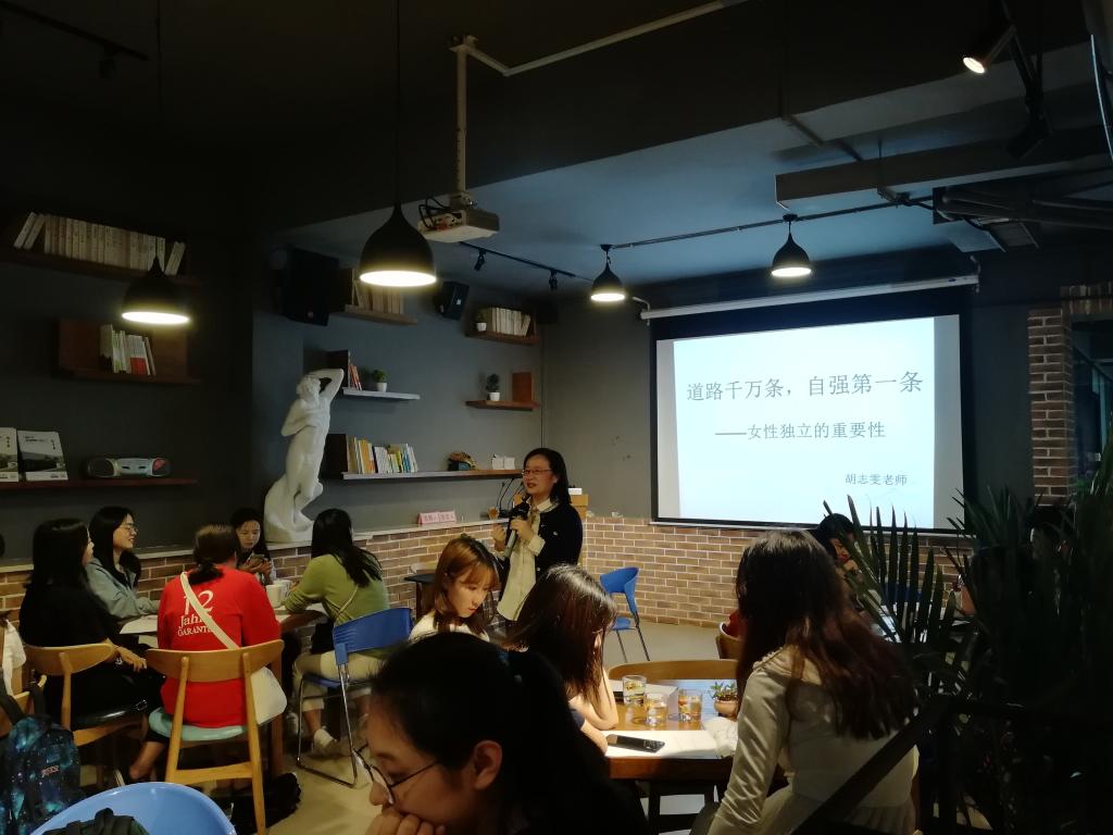 接着胡老师对同学们的心得进行总结,最后胡老师向同学们讲述了她自己的人生经历,告诉同学们:女性独立最重要的是有决心去实现自己的目标。