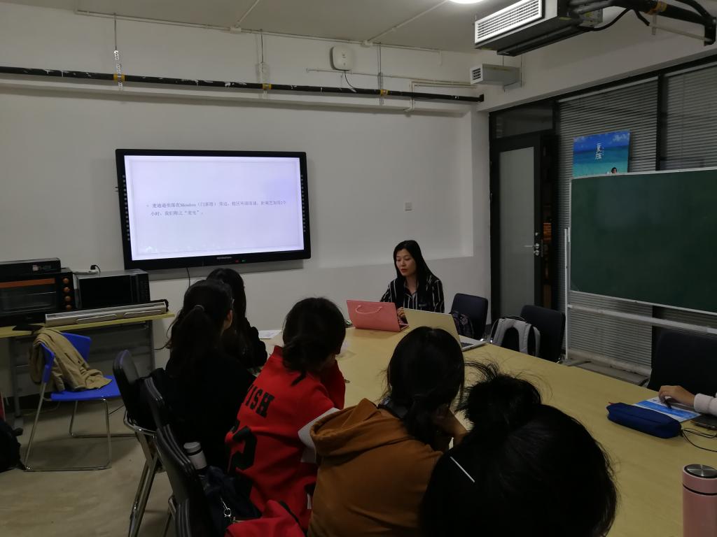 丹丹学姐首先介绍了自己在威斯康辛大学麦迪逊分校的校园环境与日常生活。科研与学习生活:麦迪逊坐落在门多塔旁边,校区环湖而建,距离芝加哥2个小时,因此被称之“麦屯”;学姐介绍到,麦屯的图书馆资源十分丰富,校区内共有三个图书馆,藏书之多几乎应有尽有;公司采用了选课制度,每月都需要进行学术报告;之后,学姐向同学们大致介绍、讲解了自己研究的句法语义学。校园环境与日常生活:麦屯环湖而建,景色优美,夏日的傍晚每天都会有人聚集在岸边吃饭、聊天;在美国,员工们很喜欢户外活动,或爬山或远足,同时也有许多派对与聚餐,这对美国的老员工来说是很重要的交流方式。