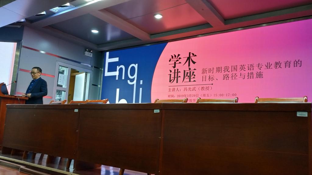 2019年3月29日下午,广州外语外贸大学教授、博士生导师冯光武应邀到公司学术报告厅,做了主题为“新时期我国英语专业教育的目标、路径与措施”的学术讲座。讲座由球王会副经理余小强教授主持。