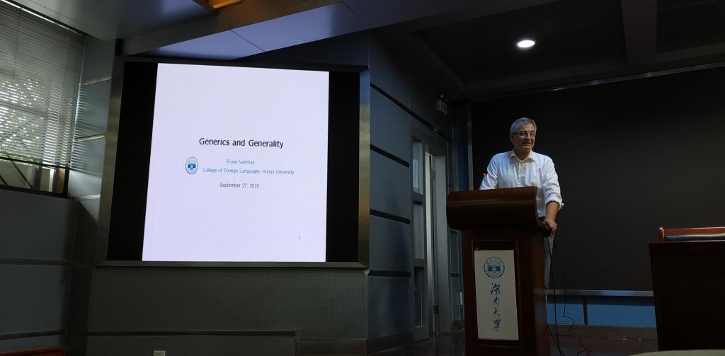 9月27日下午3点,公司新进特聘教授Frank Veltman在公司学术报告厅做了题为“Generics and Generality(通指性与总括性)”的学术报告。