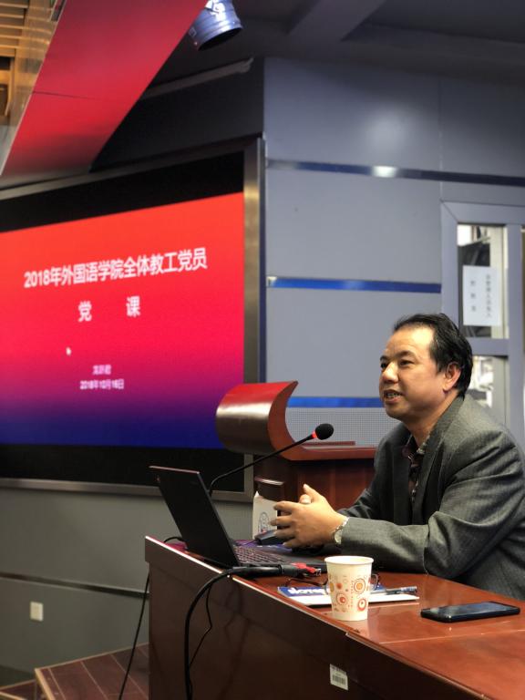 党课开始,龙书记强调党员要紧紧围绕党中央和习近平总书记关于加强新时代党的建设总要求,把政治建设摆在首位,将坚决维护以习近平同志为核心的党中央权威和集中统一领导重点突出,作为根本的政治纪律和政治规矩;党员要时刻牢记自己的身份,时刻约束自己,时刻反思改进。专题党课上,龙书记带领大家学习了《习近平在全国教育工作会议上的讲话》关于教育方针、九个坚持、六个下功夫等方面内容和《中国共产党纪律处分条例》发展历程、基本框架、新修订《条例》的特点,重点解读了《条例》(2018版)与《条例》(2015版)的异同,尤其着重解读了新增加和修订的条例,并列举了赖小民、鲁炜等腐败案例,告诫全体党员坚守政治纪律、组织纪律、廉洁纪律、群众纪律、工作纪律和生活纪律,在总体要求上,增强党组织和党员牢固树立“四个意识”和“四个自信”,不断提升共产党员的修养。