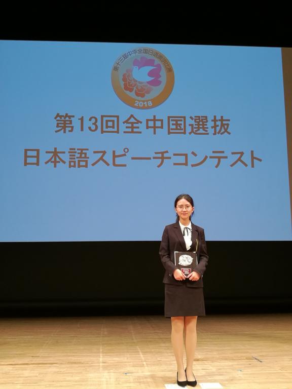 2018年7月17日,代表全国高校日语专业最高水平的第13届“中华杯”全国日语演讲比赛总决赛,在日本东京都日经会馆隆重举行。全国八大赛区16名选手齐聚一堂,展开了激烈的角逐。代表华中赛区参赛的公司外国语公司日语专业本科1501班陈沫言同学,以《人工智能将如何改变我们的生活》命题演讲和随后的即席问答演讲两轮精彩的表现,获得了全场一致好评,最终以总分第六名的成绩夺得大赛评委特别奖。在本次大赛初赛暨分区决赛中,陈沫言同学曾勇夺华中赛区亚军,在八大赛区234所公司的1.8万名选手中脱颖而出,获得赴日参加总决赛的机会。第六名的成绩不仅是是本次华中赛区选手中的的最佳排名,同时也是湖南省高校日语专业有史以来的最好成绩。冠亚军分别来自上外,北外和广外三所外国语院校。陈沫言同学在海外高水平的舞台用优异表现征服中日两国的评委与听众,充分展现了千年学府百年名校的底蕴和学子风采。