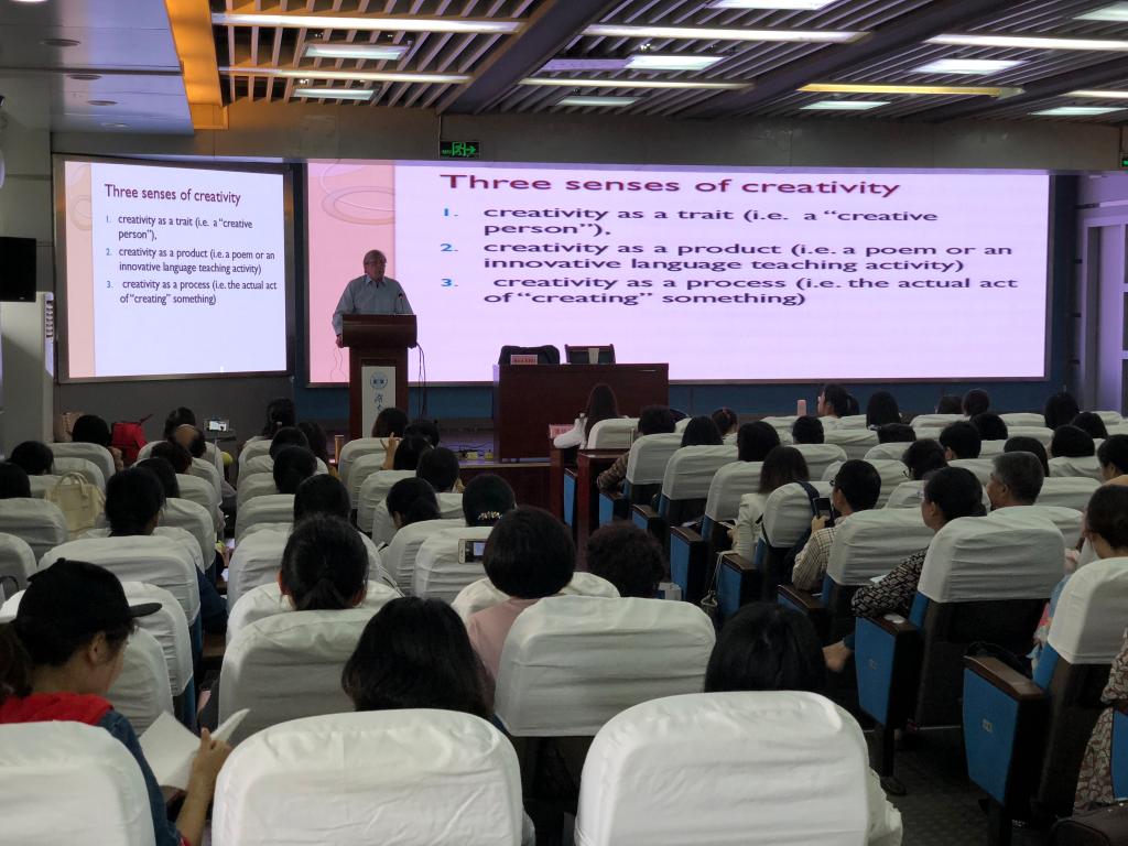 开放课堂及研修班为期两天,共两个环节,分别是大会主题讲座和大学英语开放课堂。主题讲座特邀国际知名二语习得、语言教学及教师教育专家Rod Ellis,广西师范公司李晓教授,球王会刘正光教授,分别以“Methodology of the task-based lesson”,“认知语言学的语言学习观与大学外语教学”,“基于文本解读的大学英语阅读教学设计”为题,从不同角度与参会者共同探讨大学外语教学研究。