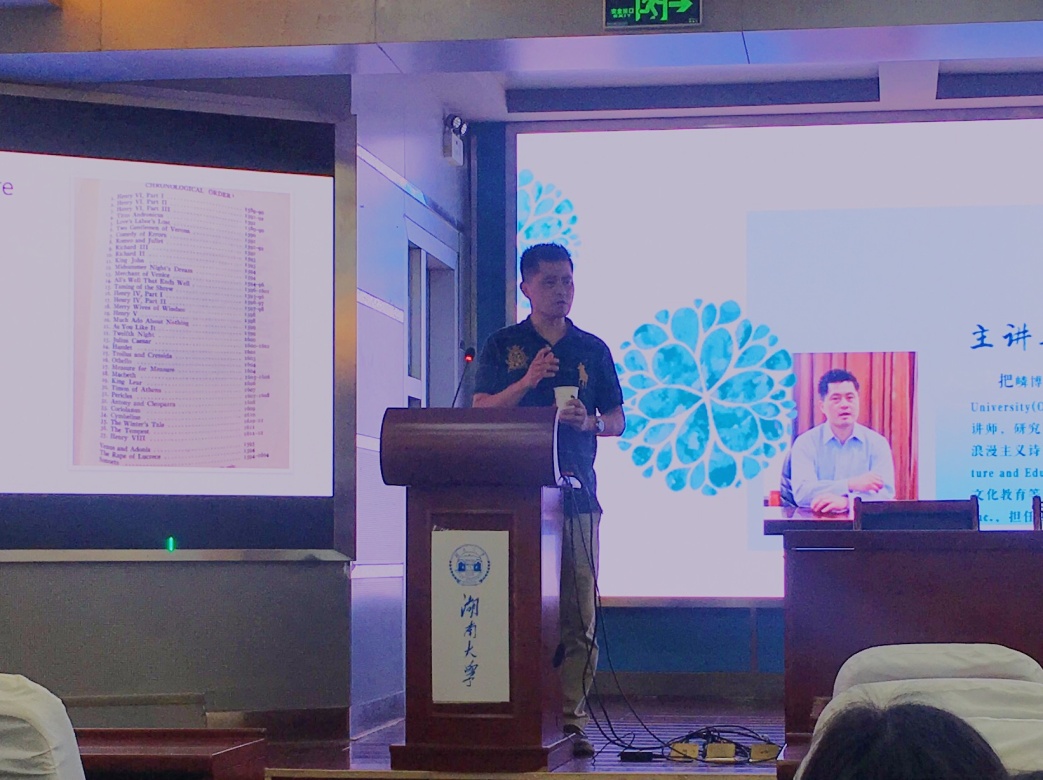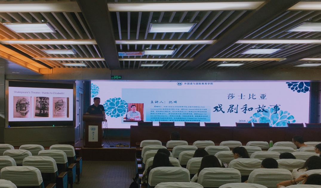 5月5日下午,校国合处和公司特邀专家把嶙博士,在公司学术报告厅为公司师生做了题为“莎士比亚戏剧和故事”的学术讲座。讲座开始,把嶙博士旁征博引,为同学们介绍了英国历史发展概况,并与同学们进行了互动交流。接着,把嶙博士向大家讲述了莎士比亚生平经历,包括时代和历史背景对其戏剧创作的影响。讲座结尾,把嶙博士提出美好希冀,希望同学们珍惜时光,好好对待生活。整个讲座使同学们从多角度对莎士比亚本人及其戏剧创作有了更深刻的认识。公司副经理田臻教授参加并主持了讲座。