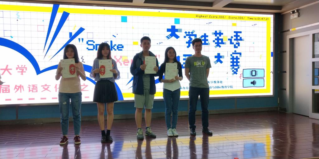 在激烈的比拼之后,结果浮出水面。最终,获得三等奖的有:万词王队、不知道起什么名队、攻坚克难队、OK队;获得二等奖的有:Wifi满格队、四个人一队;获得一等奖的有:五四运动队、又双叒叕睡过队。希望获奖的队伍能把学习英语的状态继续保持下去,再接再厉,再创佳绩。