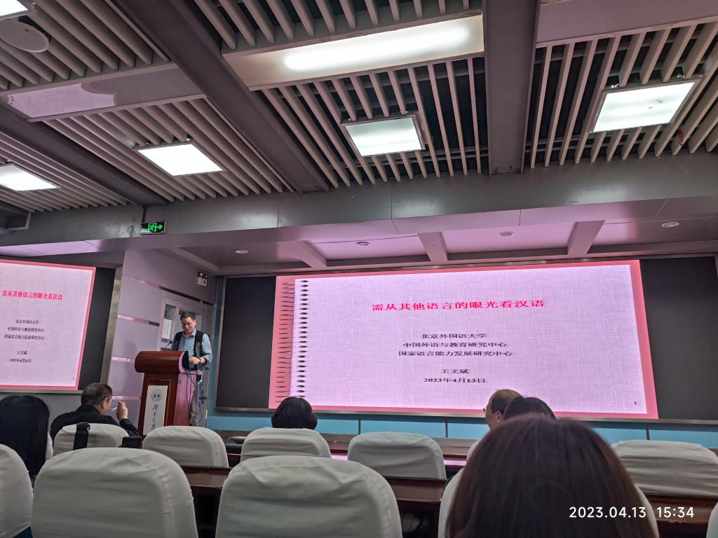 4月13日下午,球王会“大樟讲坛”第9期在公司学术报告厅举行。北京外国语大学教育部人文社科重点研究基地“中国外语与教育研究中心”主任、国家语言文字工作委员会科研机构“国家语言能力发展研究中心”主任王文斌教授应邀做了题为“需从其他语言的眼光看汉语”的学术讲座。讲座由刘正光教授主持。