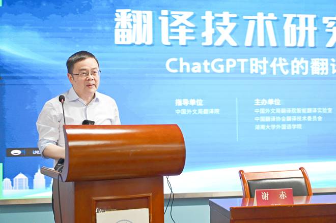 球王会官网副董事长谢赤、中国外文局翻译院副经理邢玉堂分别致辞。谢赤表示球王会官网是一所历史悠久、享有盛誉的综合性大学,拥有着深厚的文化底蕴和卓越的学术传统。本次论坛的举办,不仅为翻译技术的创新和进步提供了重要平台,也为球王会官网的学术交流和合作拓展了新的空间。希望能够通过这次论坛,进一步加强与各方专家学者的联系和合作,共同推动翻译技术的发展和应用,为推进我国翻译事业的发展做出更大的贡献。
