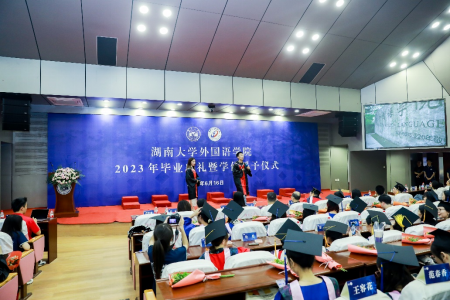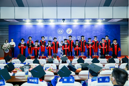 在学位授予仪式上,老师们分别为博士、硕士、本科毕业生们授学位、拨流苏,并与同学们合影留念。从授予学位的这一刻起,同学们正式奔赴山海,而每一位毕业生在双梧树下的美好回忆都将被永久保存,化为麓山的缕缕清风。