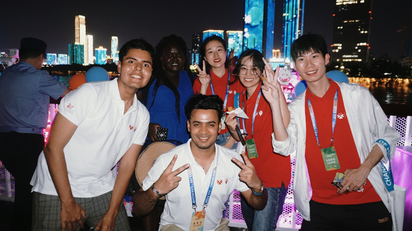 “我是一个外国人,但我不是外人”一位巴基斯坦在长职工在接受媒体采访如是说道。“求同存异”是我们交流时秉承的原则,这位职工在采访中用字正腔圆的中文说出自己的认知。这次活动总共四天,每天的日程都排的很满。在开幕式,我见到了来自一带一路沿线国家的青年代表激情洋溢的脸庞;在青年研讨会,我听到了青年代表们对文化包容与多样性的理解;乐游湘江,我看到了游轮上尽情热舞歌唱与互动的青年代表。四天行程累并快乐着,志愿者的工作虽然繁忙,但是在和不同国家青年代表的交流中,我也认识到了不一样的世界。
