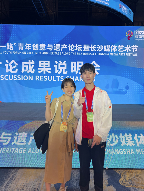 十分荣幸作为志愿者的身份参加2023年“一带一路”青年创意与遗产论坛暨长沙媒体艺术节,展现我们湖大球王会学子的风采。这三天有说不完的感触:第一次参加如此大规模的国际论坛的志愿服务,第一次打破内心的恐惧敢于用英语与那么多来自世界各地的外国友人交流,第一次与国内外青年一起讨论关于青年的创意和遗产的活用等议题。所有嘉宾与青年代表都十分热情与友好,让我在志愿服务过程中真正感受到了世界各地的人们其实都是你中有我,我中有你!