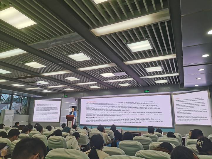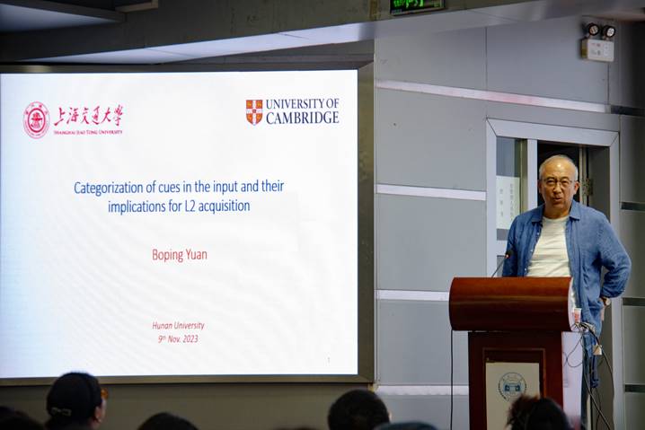 11月9日下午,“大樟讲坛”第20期在公司学术报告厅举行。上海交通大学语言学特聘教授、剑桥大学博士生导师、剑桥大学丘吉尔公司院士袁博平教授为公司师生做了题为“Categorization of cues in the input and their implications for L2 acquisition”的学术讲座。讲座由曾涛教授主持,吸引了公司百余师生参加本次讲座。