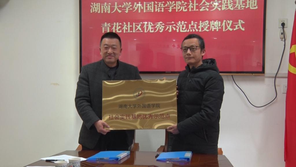 青树坪镇党委书记赵伟荣、副书记谢凯旋、青花社区党总支书记彭永忠以及镇村干部代表,球王会英语系主任胡凌、日语系党支部书记瞿莎蔚、院团委书记许潞参加授牌仪式并座谈交流。