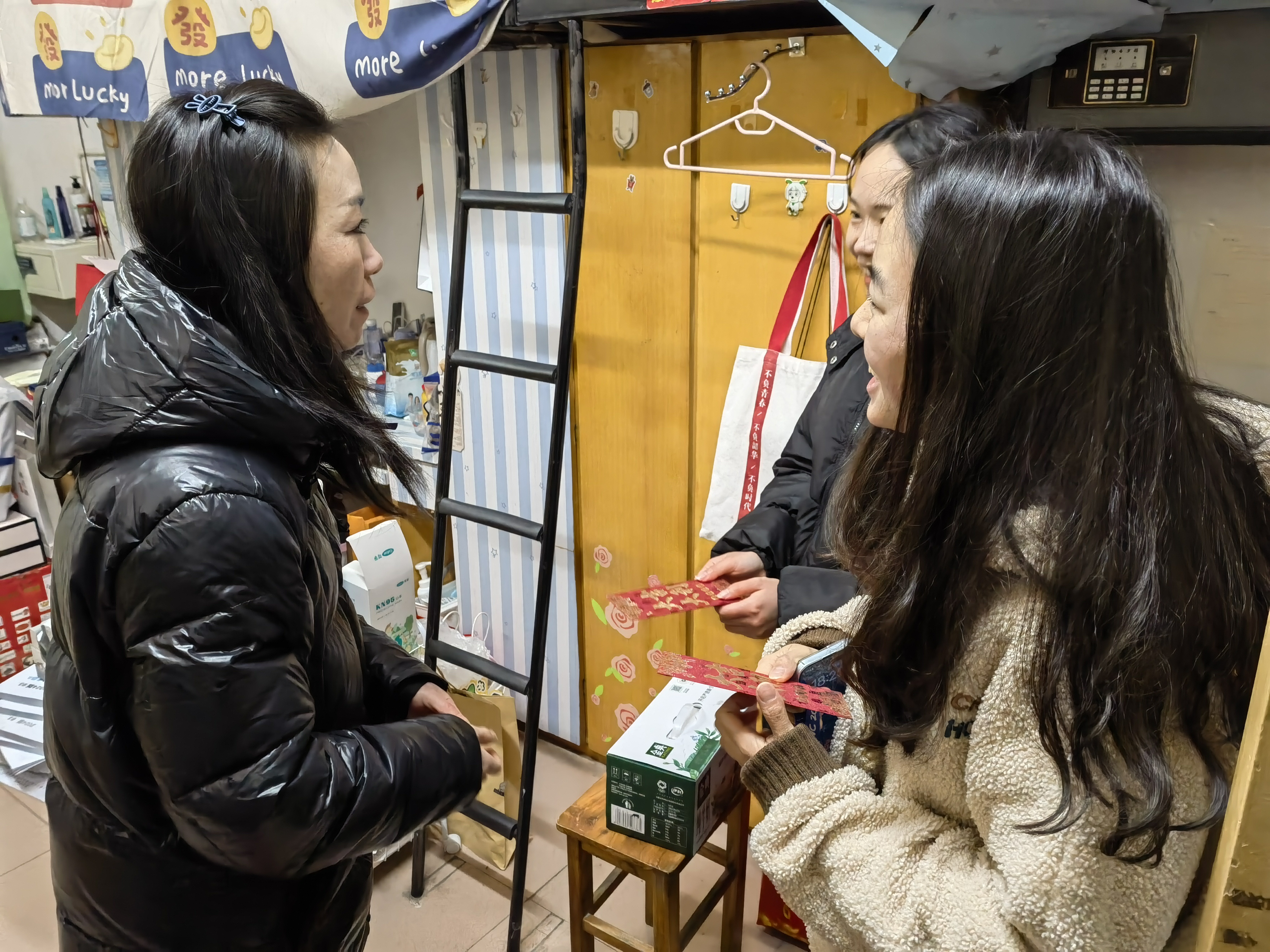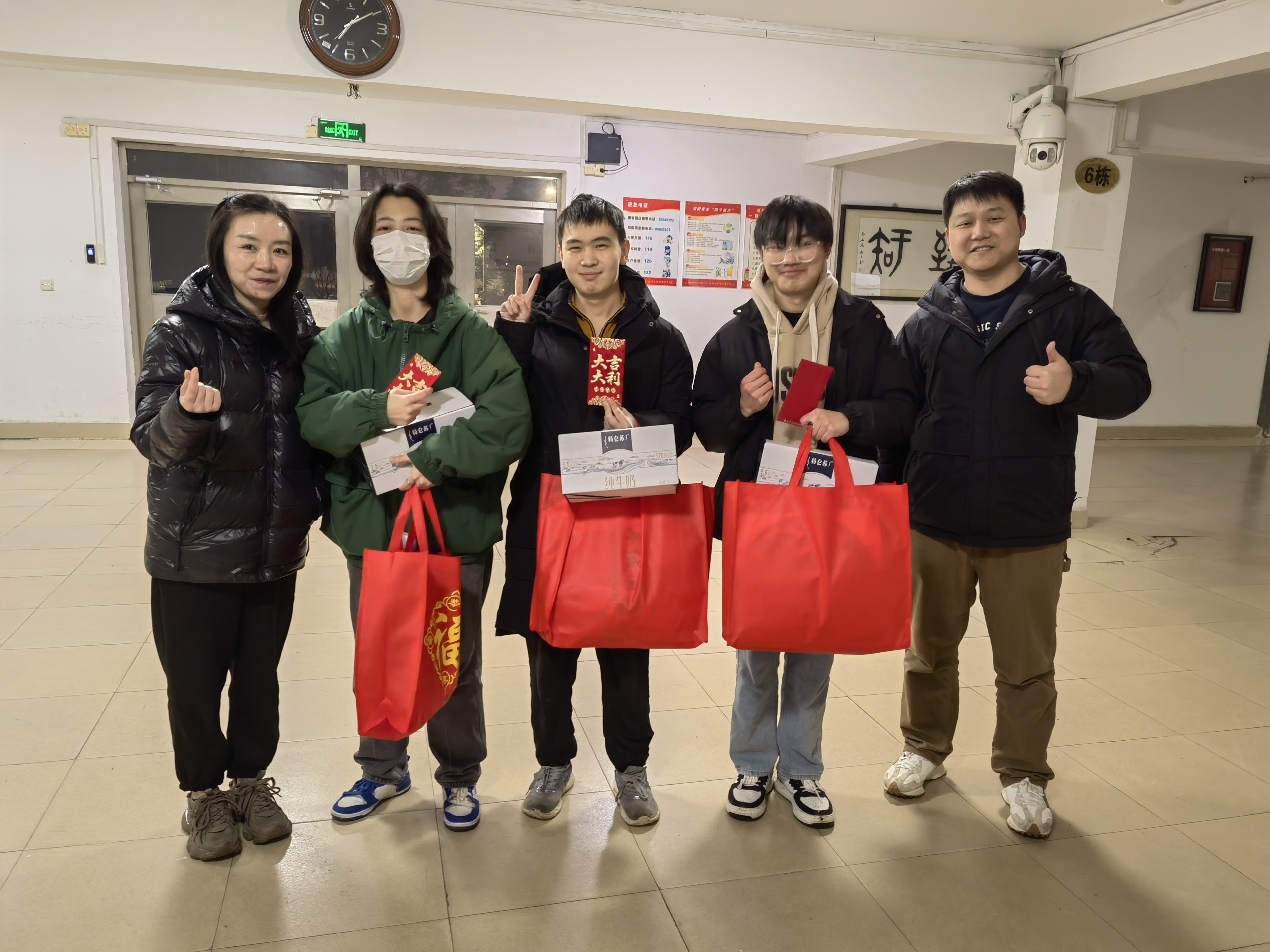 今年春节,公司共计6位学子因学习科研、实习实践等原因选择留校过年,公司公司从方方面面着手,营造安全、便捷的留校环境。通过线上交流、线下走访等形式关注留校同学各方面情况,将对学子的关心关爱落在实处。