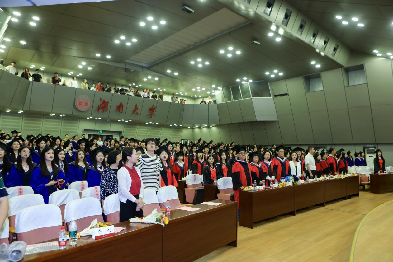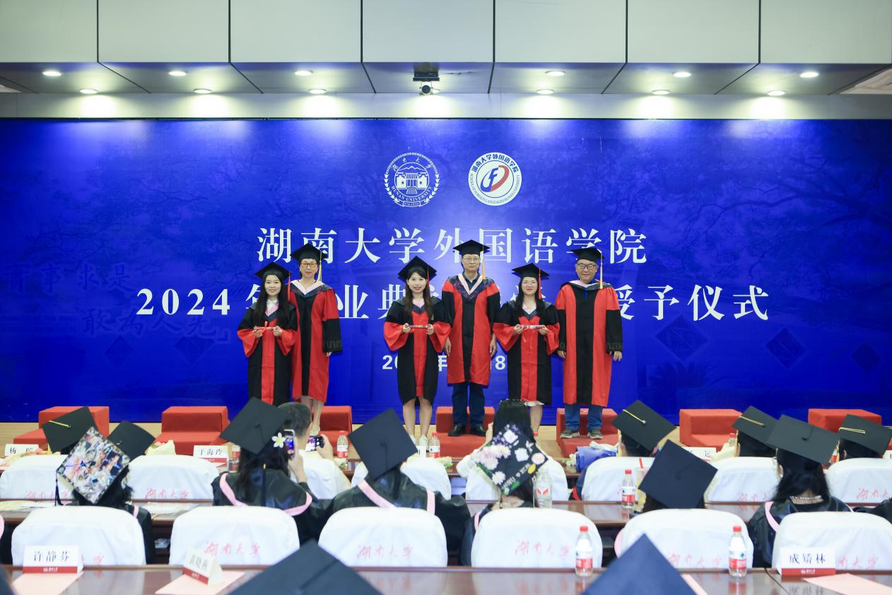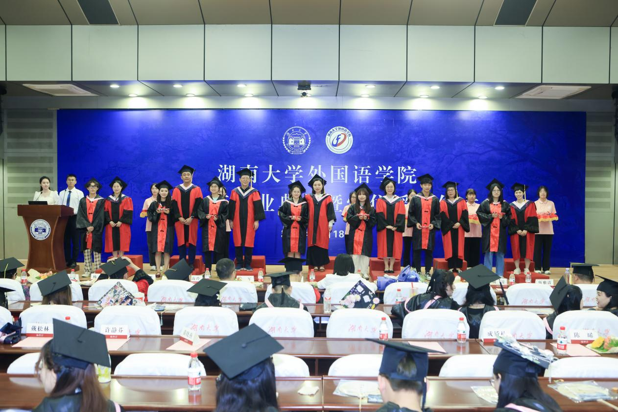在学位授予仪式上,老师们分别为“博士、硕士、本科毕业生授学位,拨穗,并与同学们合影留念。接受学位,不仅是一种荣誉,更意味着一种责任,每一位毕业生都将带着无限的希望与活力,随麓山的风一起去更广阔的天地生根发芽。