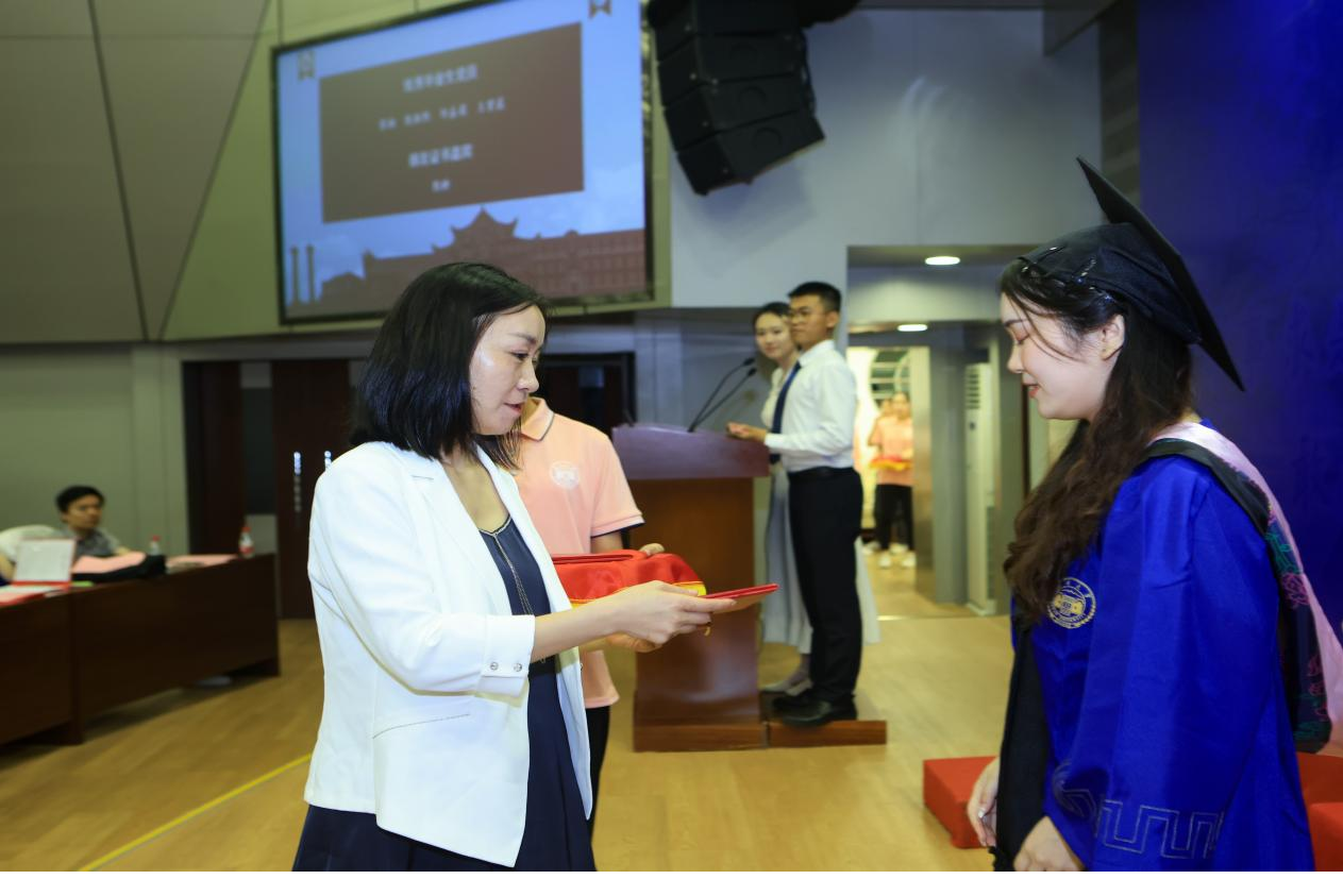党委副书记熊翀宣读2024年员工年级理事及表彰名单。副经理任远、经理助理陈飞老师为优秀毕业本科生颁发证书,副经理于海玲、余小强老师为优秀毕业研究生颁发证书,党委副书记熊翀老师为优秀毕业生党员颁发证书,公司党委书记徐军、经理莫再树为球王会2024届员工年级理事颁发证书。