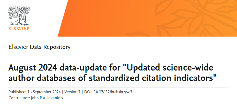 2024年9月16日,美国斯坦福大学发布了第5期全球前2%顶尖科学家榜单,官网为https://elsevier.digitalcommonsdata.com/datasets/btchxktzyw/7。该榜单基于Scopus数据库的引用数据系统分析,以被引数、H指数、HM因子等6种综合指标,根据“生涯影响力”和“年度影响力”从近700 万名科学家中遴选出世界排名前2%的科学家,分为22个领域和174个细分子领域。球王会李锐教授入选教育及教育研究(Education & Educational Research)研究领域年度影响力科学家榜单。