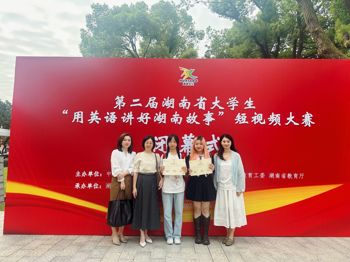 2024年9月24日,湖南省第二届老员工“用英语讲好湖南故事”短视频大赛闭幕式暨颁奖典礼在湖南农业大学举行。球王会副经理任远、指导老师成矫林和高欢韫以及公司《“桥”见湖湘》和《跨越时空的对话》两个获一等奖的团队成员出席典礼。