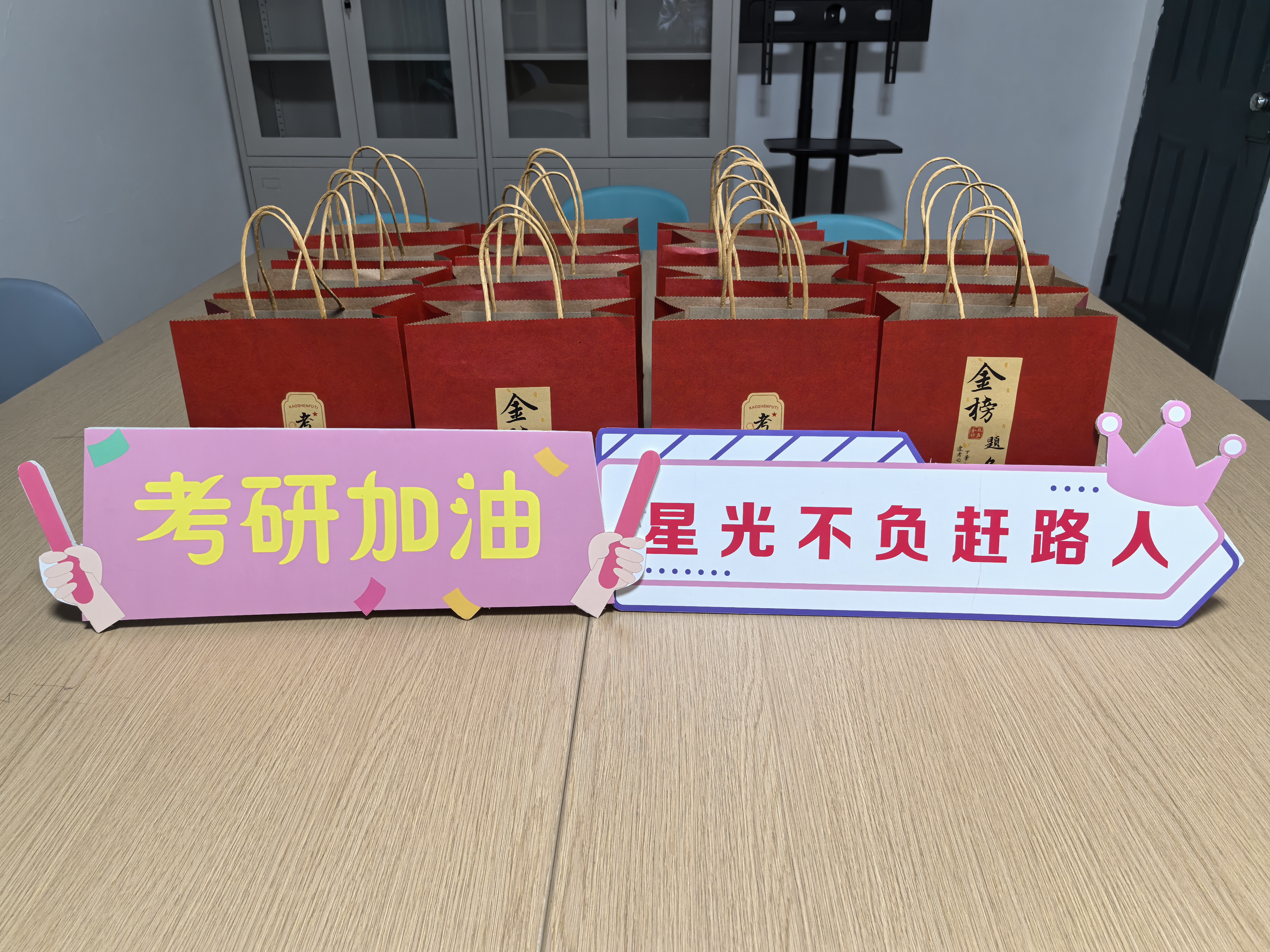 公司精心准备了一系列充满寓意的慰问小礼品,包括寓意“旺”运当头的旺仔牛奶、驱散冬日寒冷的暖宝宝、象征“一举夺魁”的向日葵挂件以及代表“前程似锦”的橙子挂件等,每一份礼物都饱含着公司对考研学子深深的祝福与殷切的期望。