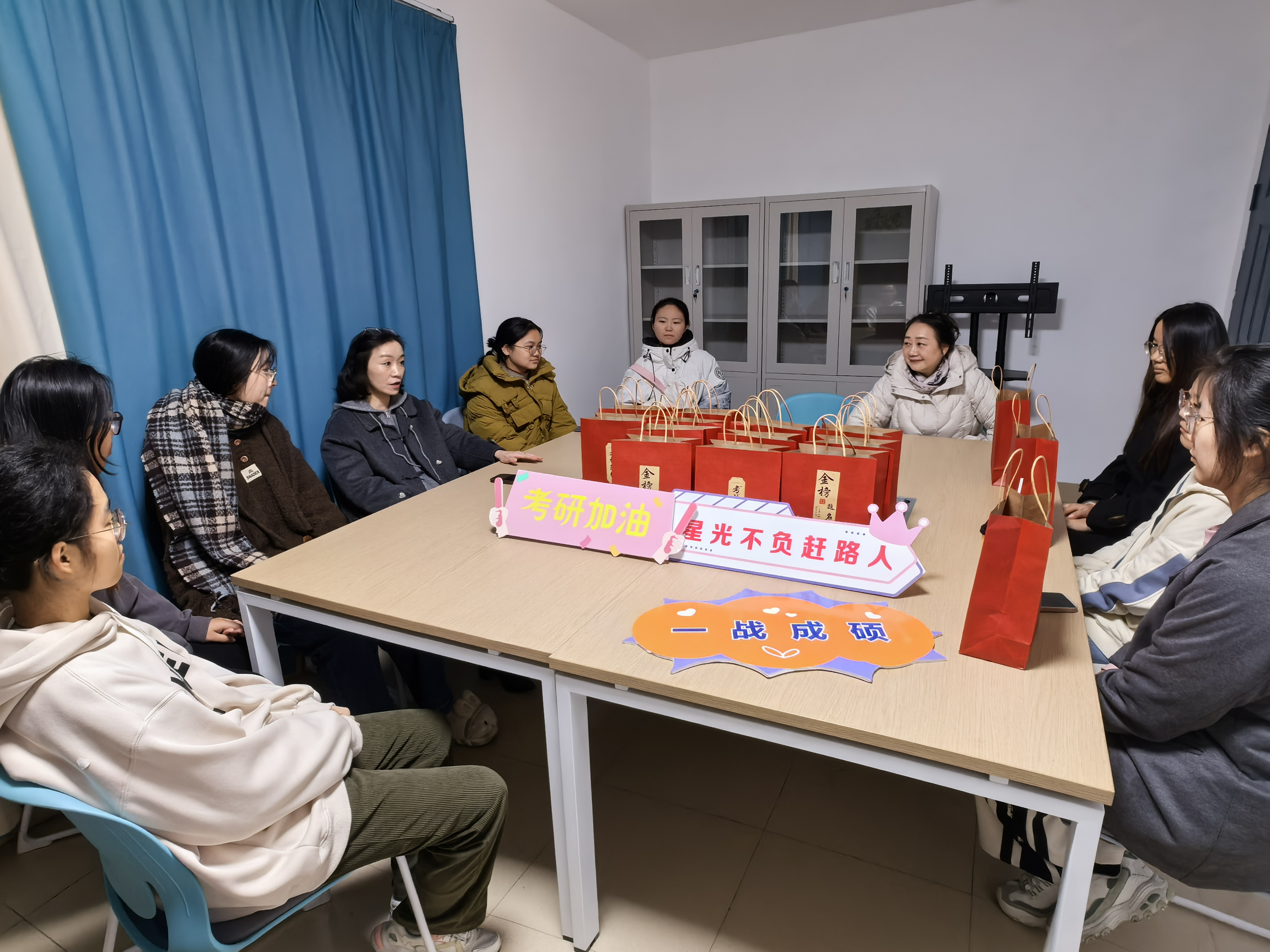 陈飞老师提醒同学们注意基础知识的夯实,不要忽视模拟考试与真题练习。班主任邹颖娟老师和陈秋霞老师则分享了往届学长学姐的考研经历和学习方法,叮嘱同学们在最后的冲刺阶段要注重查缺补漏,劳逸结合,不要给自己过大的压力。老师们的关怀与鼓励,让同学们深受感动,倍感温暖。