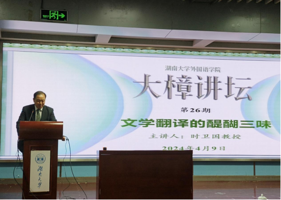 4月9日下午,山东大学特聘教授、东方文化研究中心主任、博士生导师时卫国老师应邀做客“大樟讲坛”,以“文学翻译的醍醐三昧”为题作报告。公司日语系曹莉副教授主持报告会。