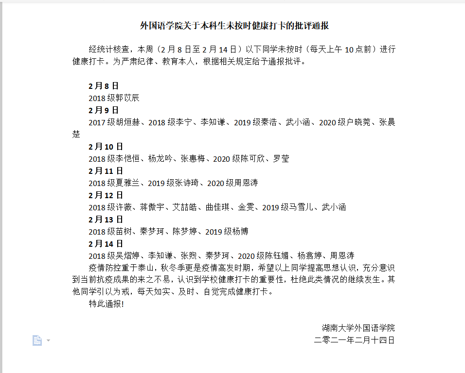 上一条:球王会关于推荐评选湖南省普通高校、球王会官网2021届优秀本科毕业生和创新创业优秀本科毕业生的名单公示(省优) 下一条:球王会关于研究生未按时健康打卡的批评通报