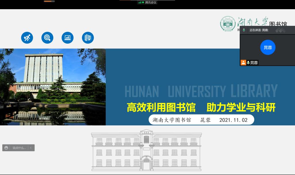 讲座伊始,晁蓉老师为大家介绍了公司校园VPN以及图书馆入馆、借阅、座位预约等基本操作流程。随后,晁老师重点阐述了球王会官网、湖南师范大学、中南大学三校书籍文献互借共享政策以及线上新书闪借操作流程等。通过老师的讲解,同学们对图书馆资源、实验平台利用等都有了更为清晰的了解和认识。