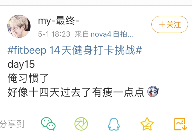 公司特举办的5.25心理节系列活动之“Fit Beep”线上健身打卡活动“‘Fit Beep’线上健身打卡活动”不仅为同学们保持好身材提供了动力从中还鼓励同学们积极关注个人健康状况,提升自身身体素质,养成良好的锻炼习惯,以更良好的精神面貌重返校园。