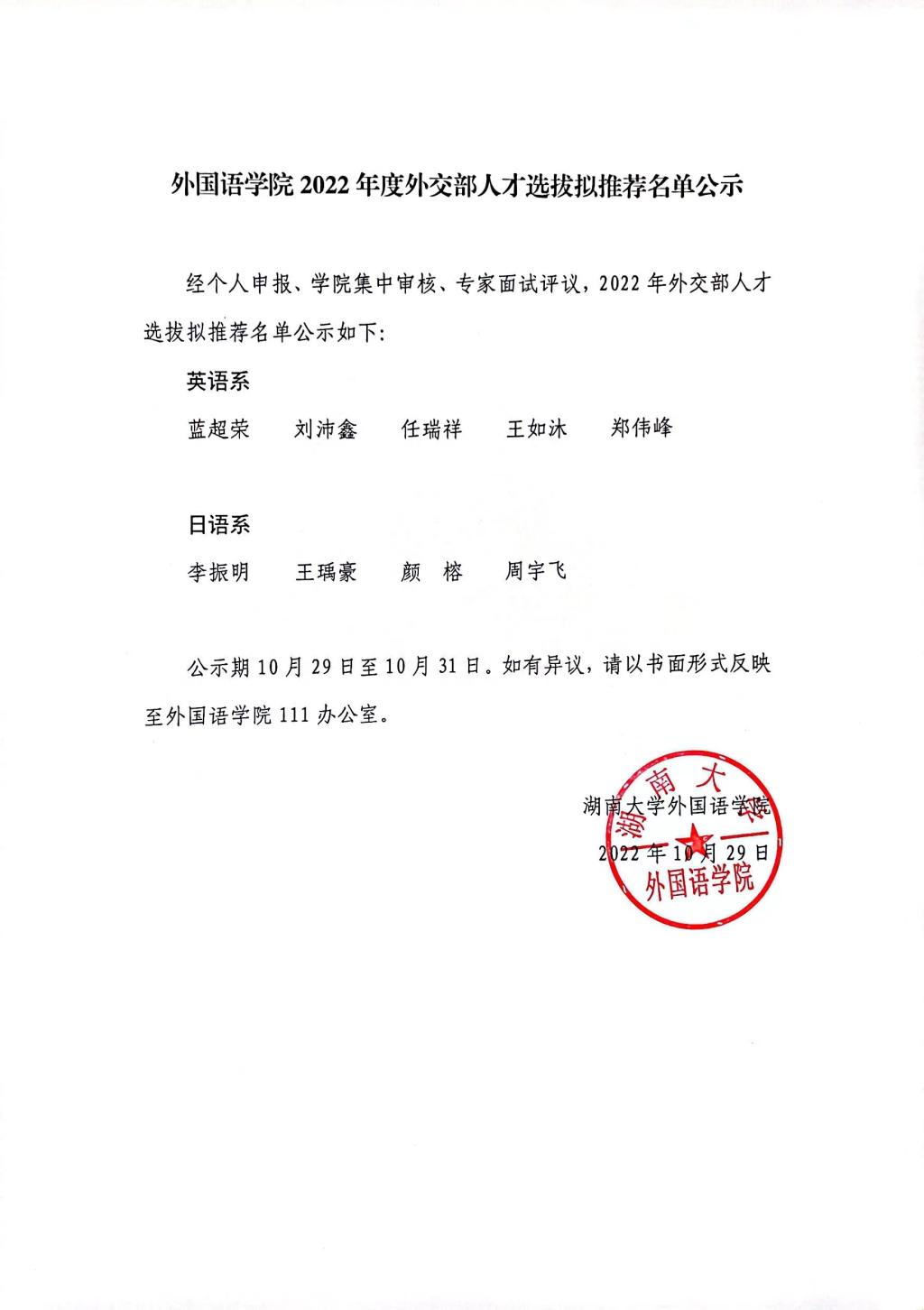 球王会2022年度外交部人才选拔拟推荐名单公示