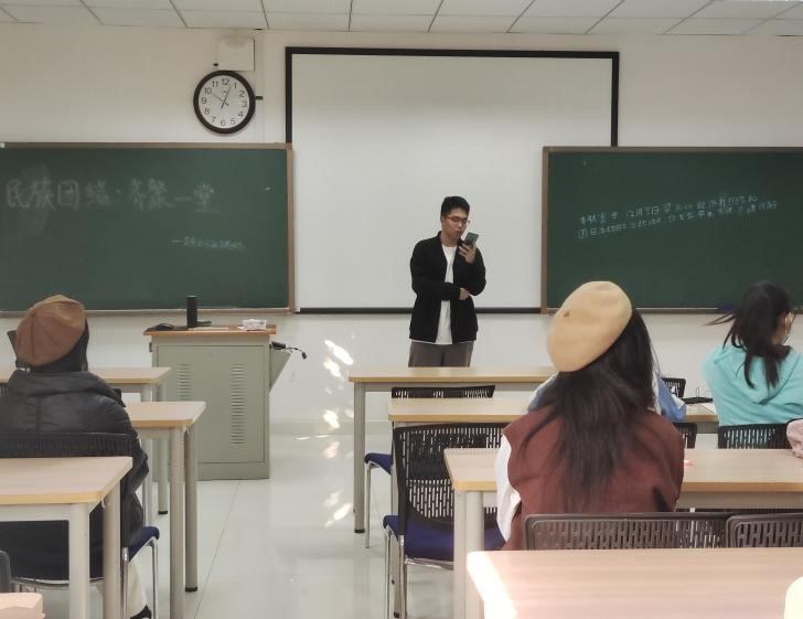 最后,史江浩同学对班会进行了总结和升华,五十六个民族是一家,号召我们要贯彻党的领导,尊重少数民族的习惯,建设多民族共同体的大家庭!
