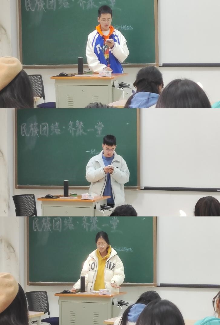 今天,让我们在民汉合校这个多民族的大家庭里,携手并进,走进研C105教室,走进我们日语2102班关于民族团结的主题班会。